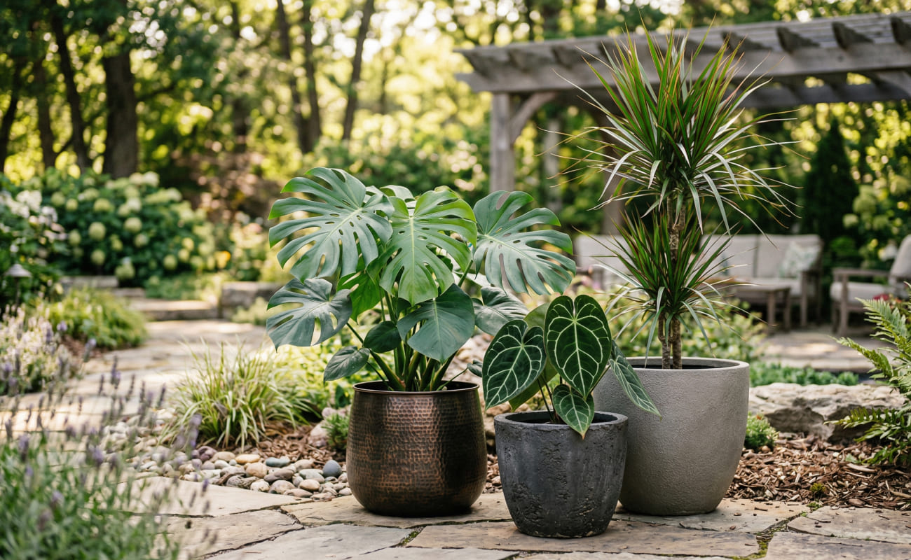 Plant selection also matters. Mature plants cost more but create an immediate visual effect.